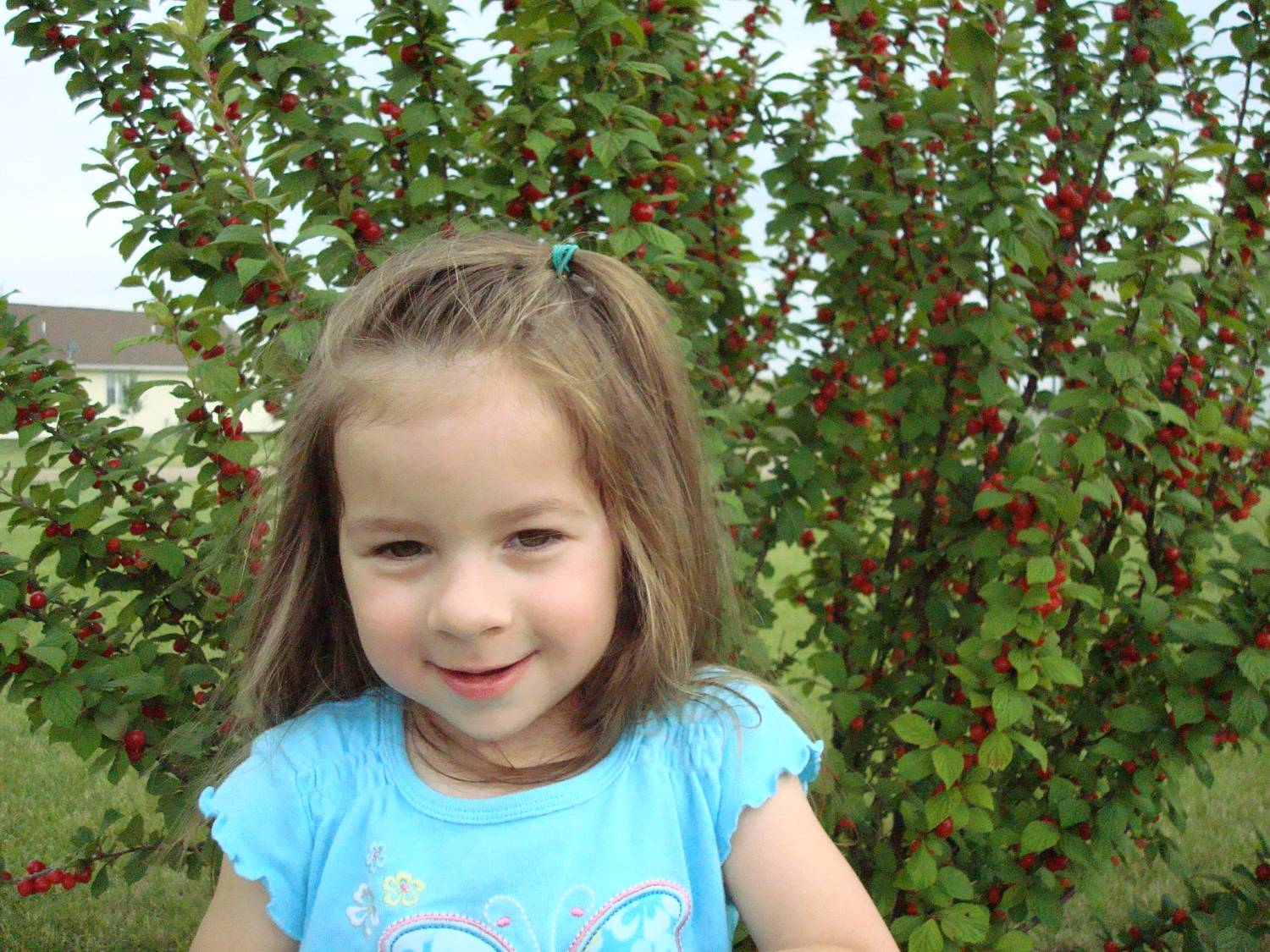 The picture below shows my daughter standing by one of the cherry trees. We have three cherry trees and all three were this full. We had a lot of cherries that year.